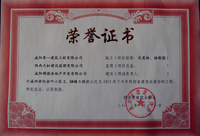 世紀金葉小區(qū)位于西咸新區(qū)灃西新城核心商圈,本公司負責建設該小區(qū)2號、3號住宅樓。項目層高27層,建筑面積3萬平方米。該項目建設過程中,先后獲得陜西省優(yōu)質(zhì)結構示范工程、陜西省省級文明工地稱號,并有多項成果被授予陜西省建設工程質(zhì)量管理優(yōu)秀QC小組成果一等獎。